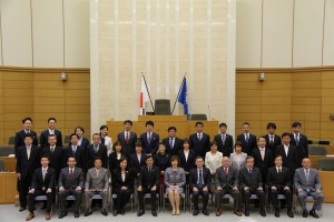本日25日(月)、平成31年2月定例会の討論・採決が行われ、当初予算案を始めとする全ての議案が可決されました。今任期最後の議会となるため、議場で全議員(1名欠席)の写真撮影が行われました。