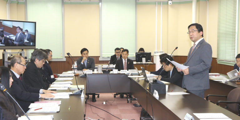 商工労働常任委員会で質問する三宅府議