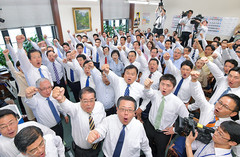 衆院は28日昼の本会議で解散された。これを受け、政府は臨時閣議を開き、第48回衆院選の日程を「10月10日(火)公示、同22日(日)投票」と決めた。公明党は解散後、国会内で衆参両院議員総会を開き、全議員が"鉄の団結"で戦い、断じて勝ち抜くことを誓った。席上、山口那津男代表、井上義久幹事長(衆院選予定候補=比例東北ブロック)は、衆院選の争点の一つが2019年10月からの消費税率引き上げに伴う増収分の使い道変更であることに触れ、「軽減税率を実行し、増収分を公明党が主張してきた幼児教育の無償化などに大きく使う。こうした方針を訴え、信任を得ていく」と強調。その上で、公明党現有35議席の死守へ断じて勝利しようと呼び掛けた。この後、山口代表は都内で街頭演説を行い、公明党への支援を訴えた。